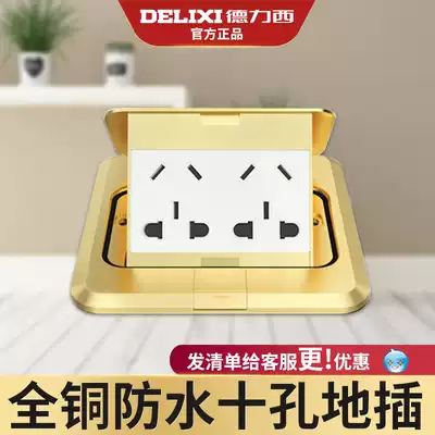 Delixi plug socket invisible copper waterproof five-hole ten-hole Internet phone multi-function ground socket household