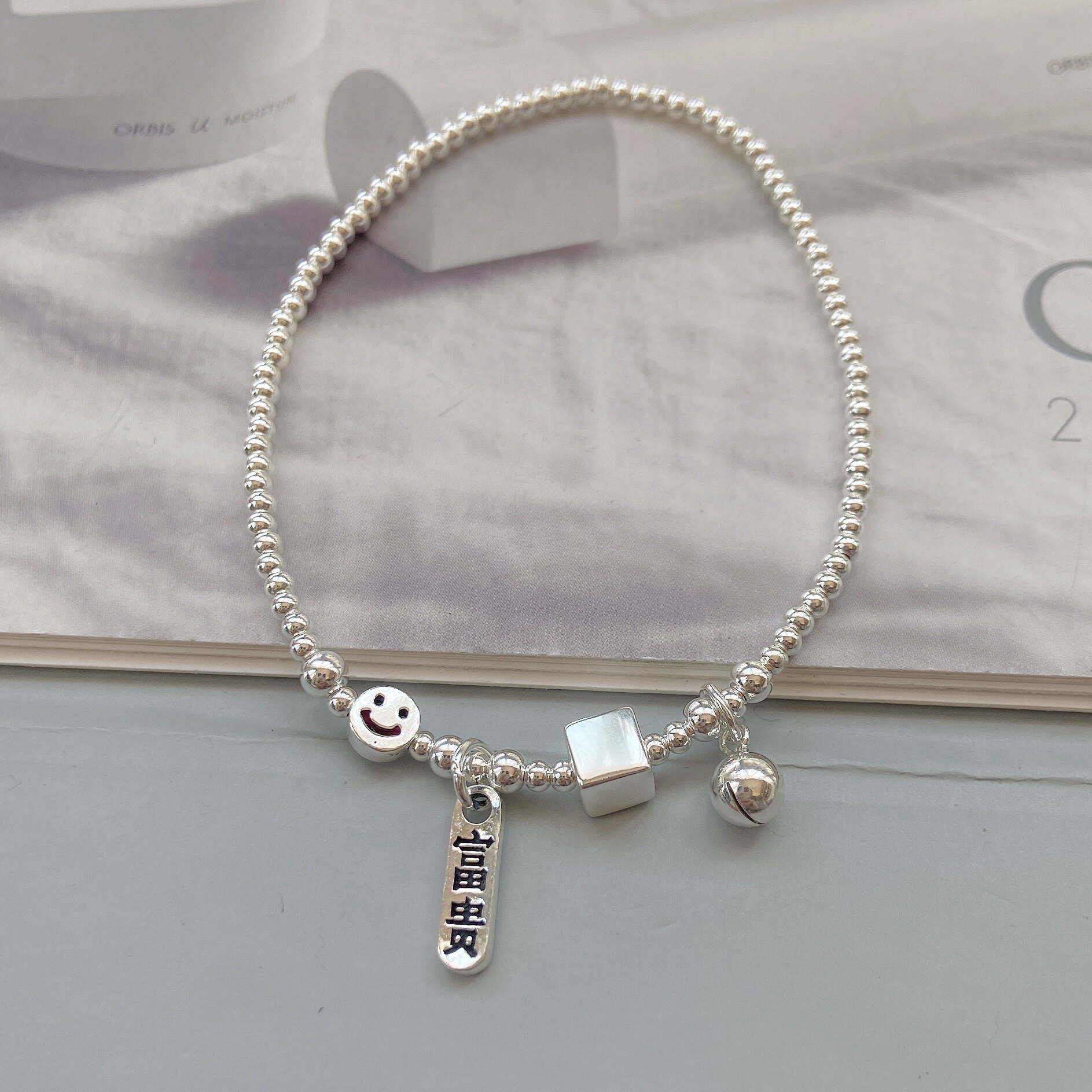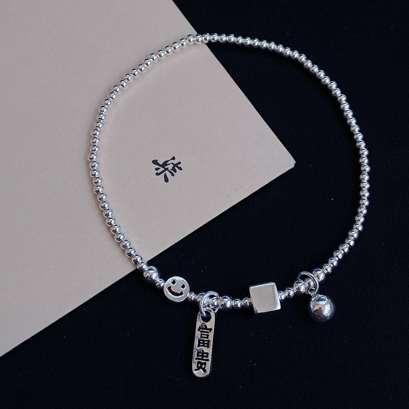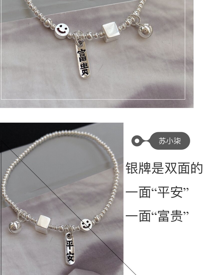 2022 New footchain to make money and smile bell silver pearl chain balloon bean bean bean bead bean bean bean bean bean bead girl's Day gift