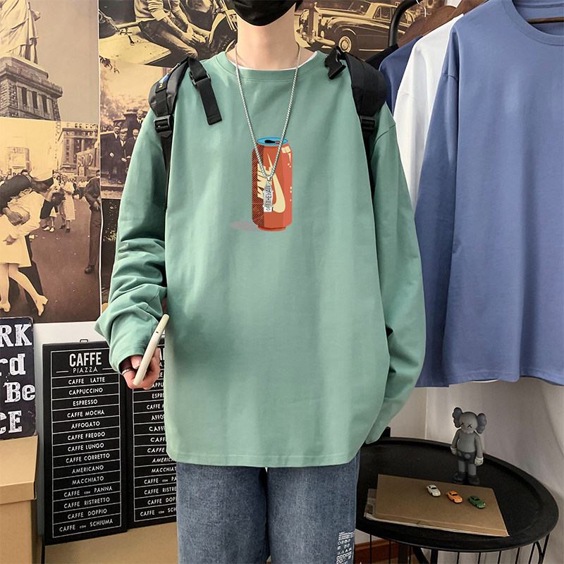 White long sleeve T-shirt male early spring hit undershirt blouses pure cotton loose Korean version 100 hitch 2021 hitch 2021 spring new