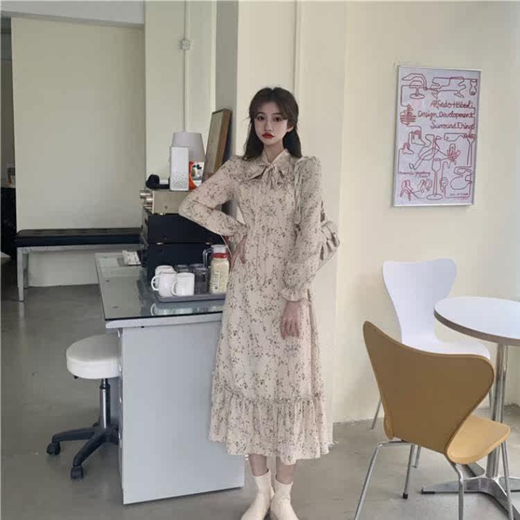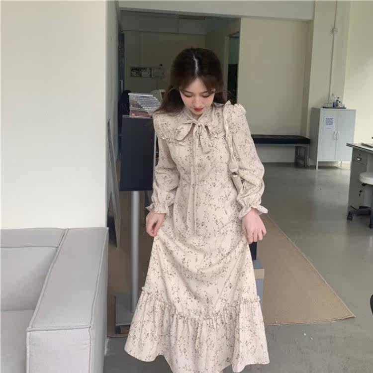 Broken Flowers Ocean Dress Women's Spring 2021 New Student Closets Slim Long Dress Temperament Heben Style Dress
