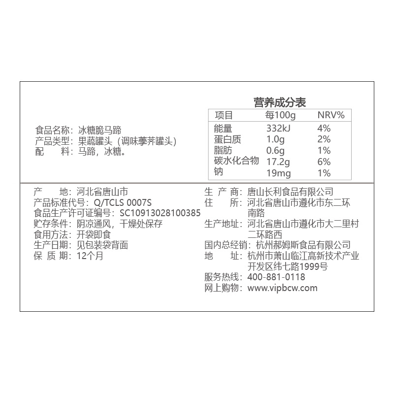 Baicao flavor-rock sugar crispy horseshoe 108g healthy fruits and vegetables ready-to-eat vegetable snacks