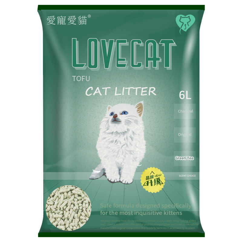 lovecat love cat green tea tofu cat litter 6L water-absorbing agglomeration plant cat litter agglomeration can flush the toilet over 10kg