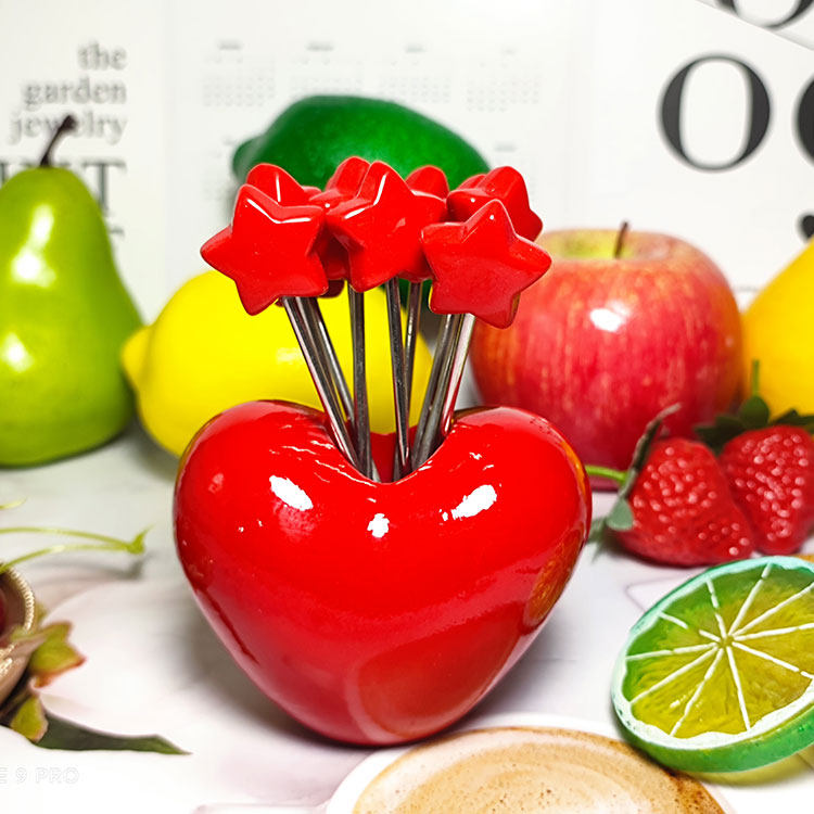 Household creative cute stainless steel fruit fork children's love cabbage strawberry European-style fruit stick fork set