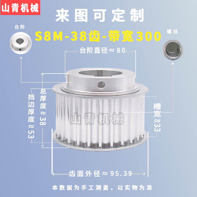 Synchronous wheel S8M38 tooth spot aluminum alloy transmission gear custom-made pulley HTPA38S8M300-N P