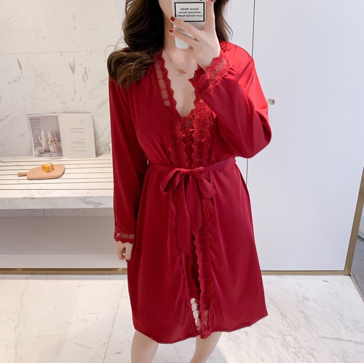 Silk pajamas Women's nightgown sundress two-piece summer home wear with chest pad Advanced silk night dress ice silk