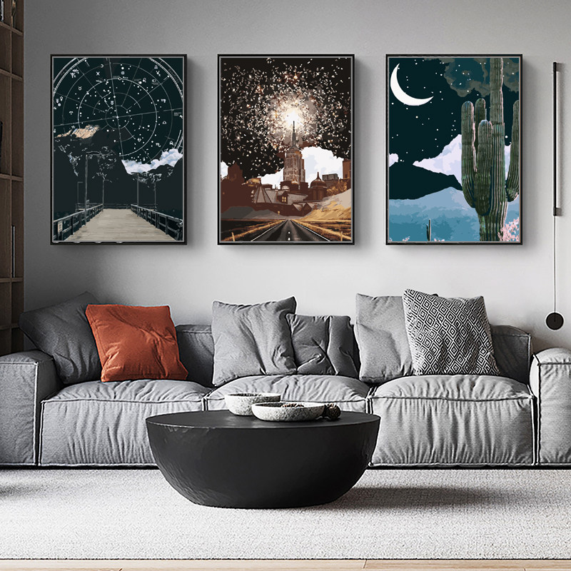 Star and moon DIY digital oil painting Hand-painted coloring decorative painting Living room filling bedroom Nordic hanging painting Oil painting ins