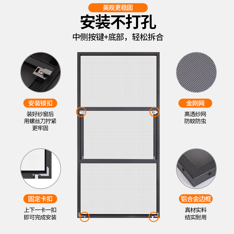 Special Three-Push Two-Push Diamond Mesh Screen-Window Anti-Mosquito Rat Snake Protection-Free Installation Free Of Punch In The Outer Open Window