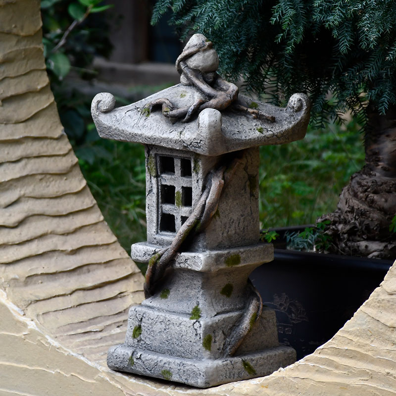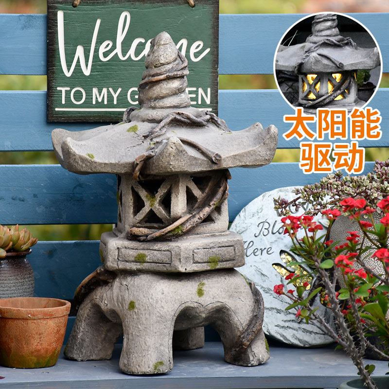 Chinese Style Zen Courtyard Decoration Solar Lamp Palace Lamp Swing Piece Retro Outdoor Terrace Day Style Garden Furnishing
