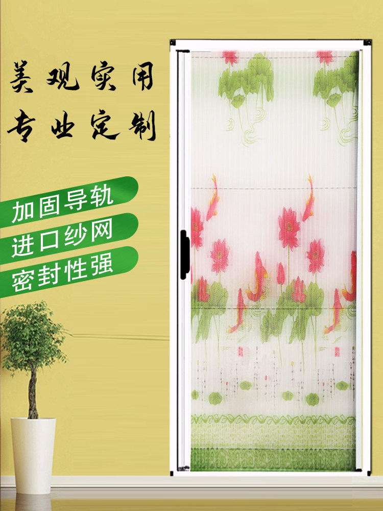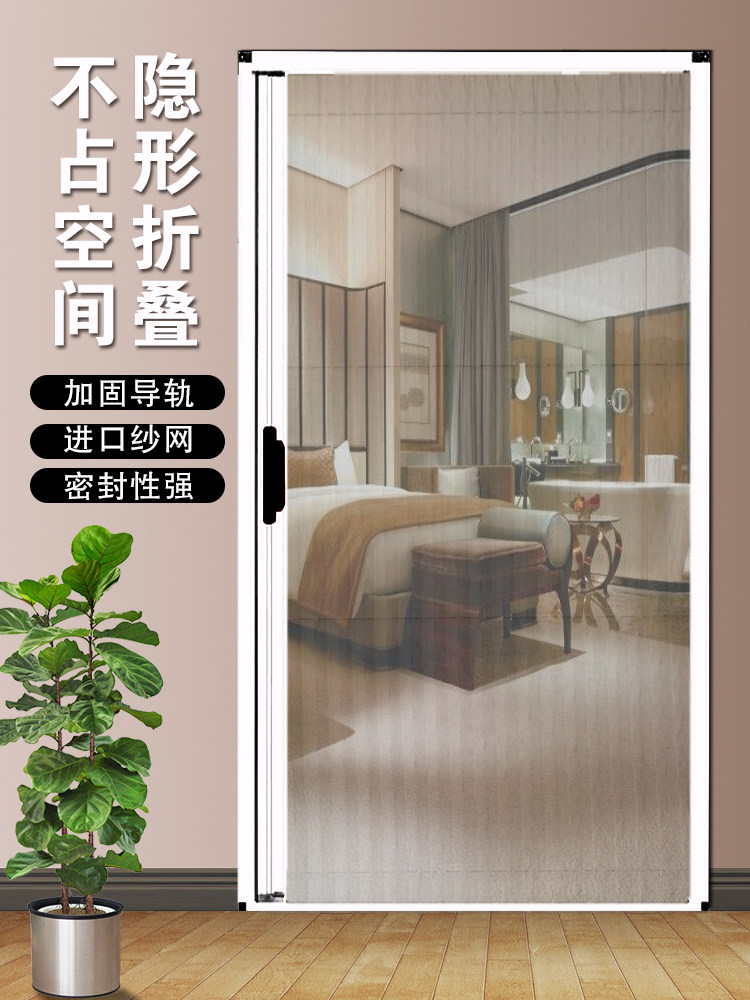 Invisible folding screen door anti-mosquito gauze mesh door curtain telescopic push-pull home non-perforated high-grade aluminum alloy screen window door