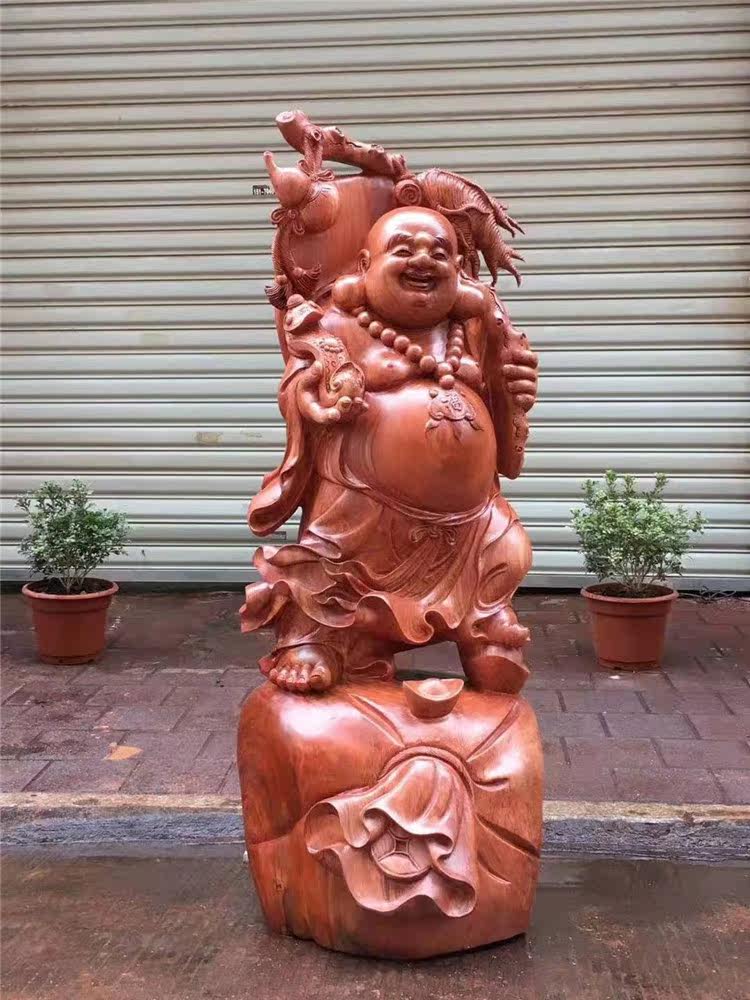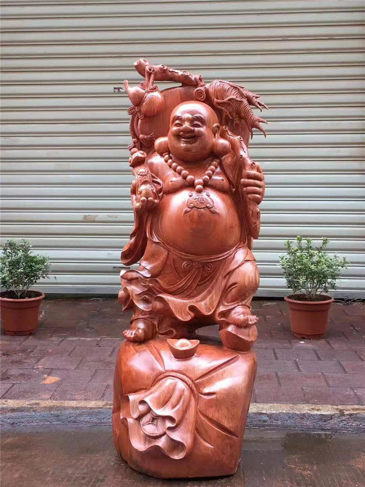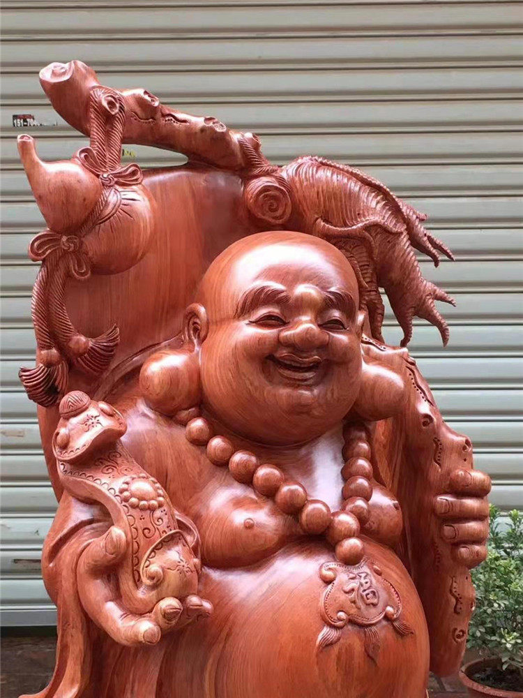 Wood carving Lucky laughing Buddha Belly Maitreya Buddha statue Rosewood Camphor cliff Cypress root carving ornaments Home decoration craft gift ornaments