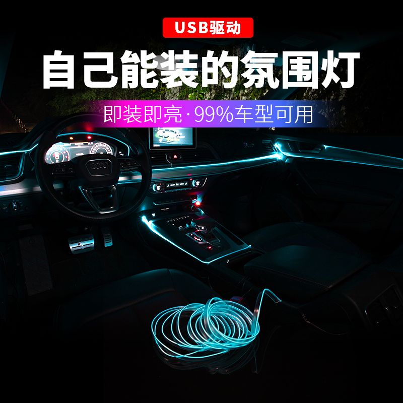 Automotive atmosphere light LED light strip in the car cold light guide bar USB central control optical atmosphere light free wiring modification