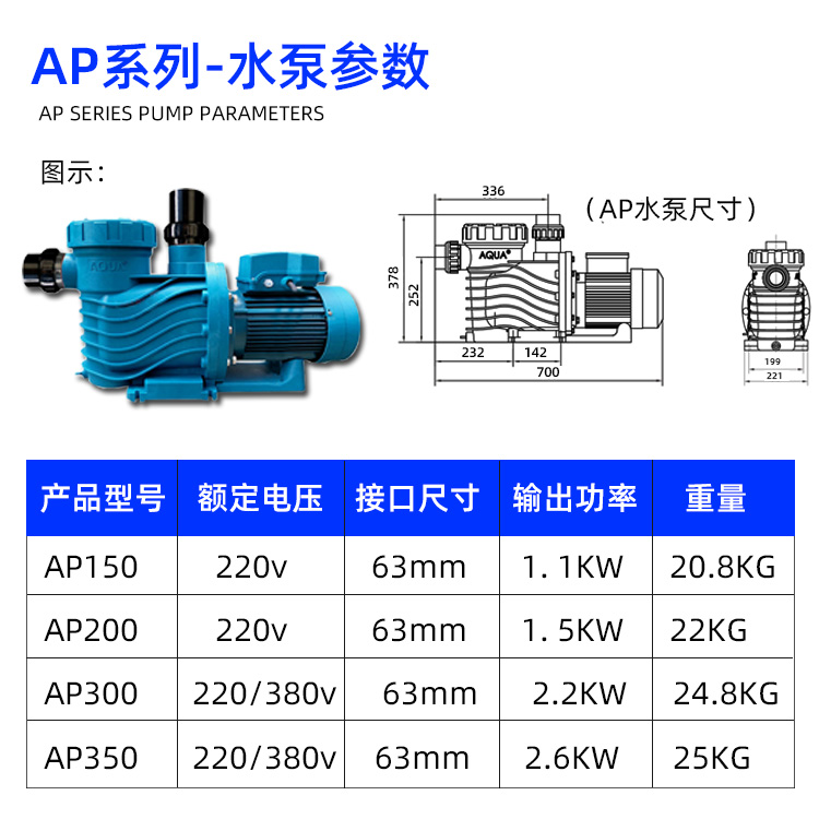 AQUA Aike Swimming Pool Cycle Water Help Pool Filter Cycle Gang Pump Suction Dirty Pump Plastic Pump Sewerage Pump equipment