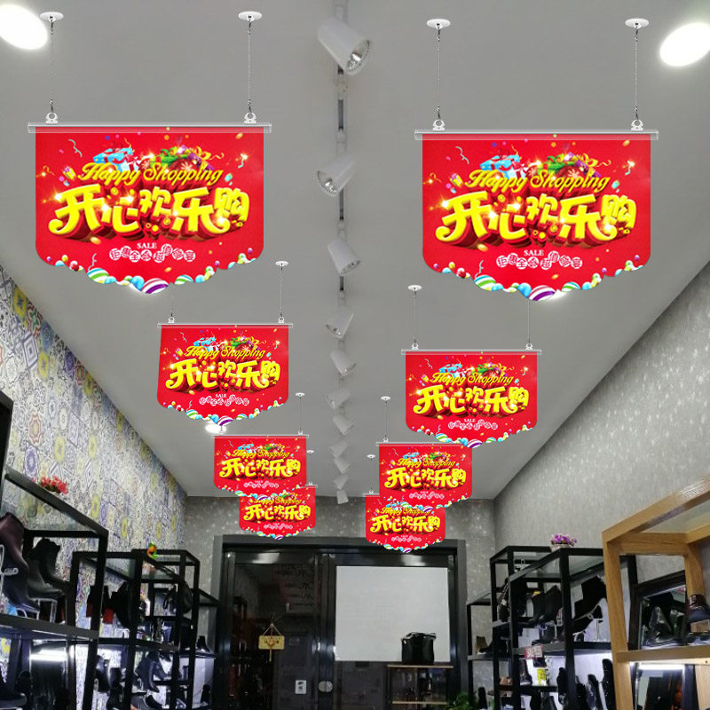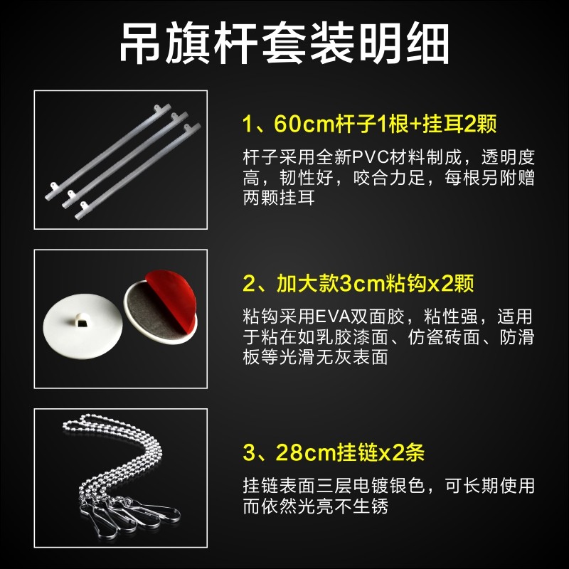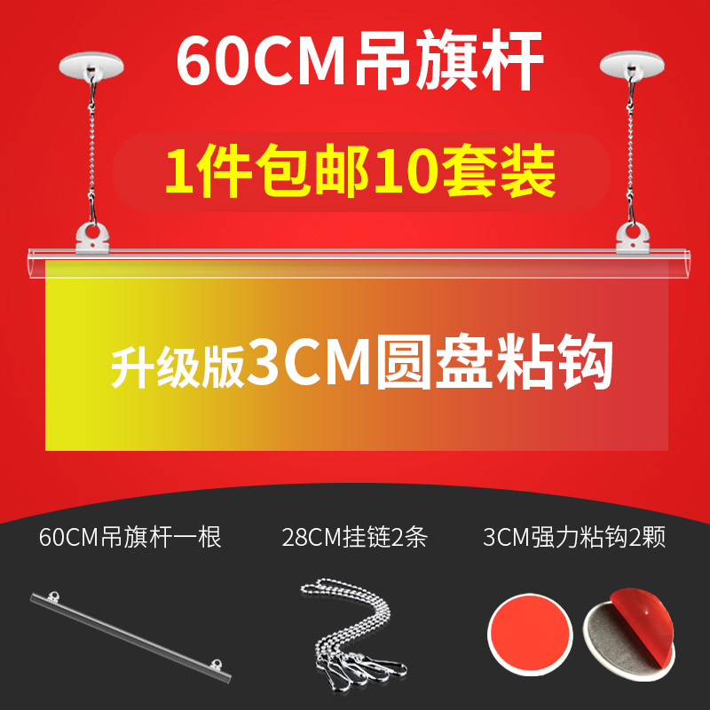 (20 sets) FLAG HANGING POLE STAINLESS STEEL METAL POSTER ROD SUPERMARKET MALL OPENING CEILING Chess Lever 80cm Suit Promotion Advertising Slogan KT Plate Clip Sticky Hook chain Three sets