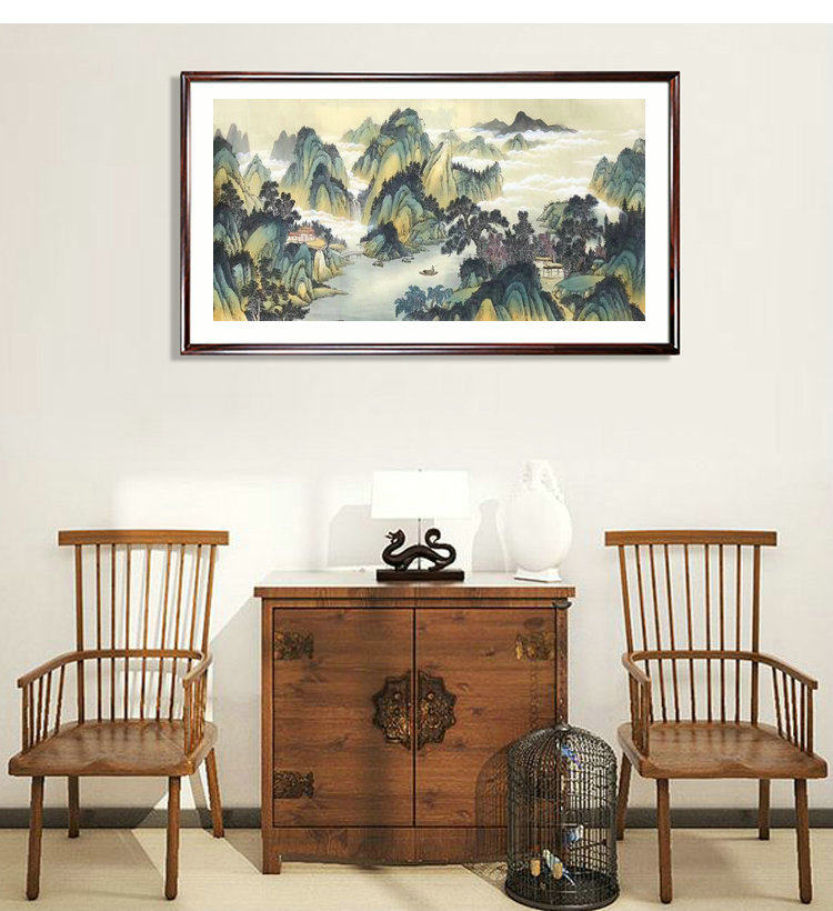 Hand-painted small six-foot antique landscape Chinese painting rice paper painting core office living room bedroom background wall decoration painting