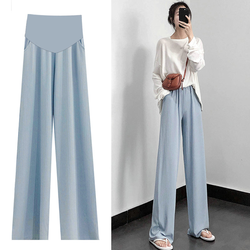 Pregnant Woman Inner Hitch Pants Summer Outside Wearing Loose Casual Wide Pants Chauma Care Spring Summer Thin Ice Silk Tug Long Pants