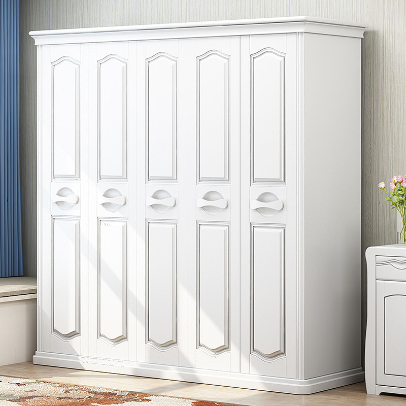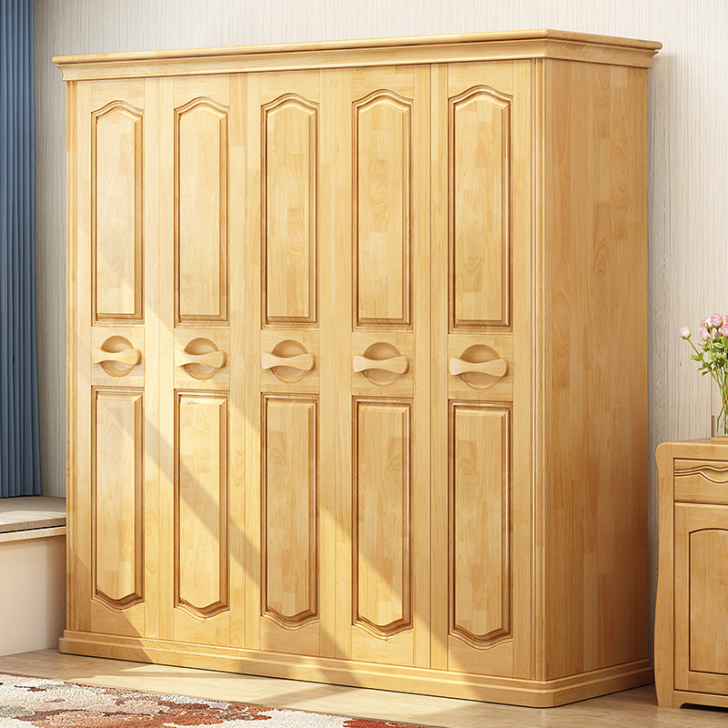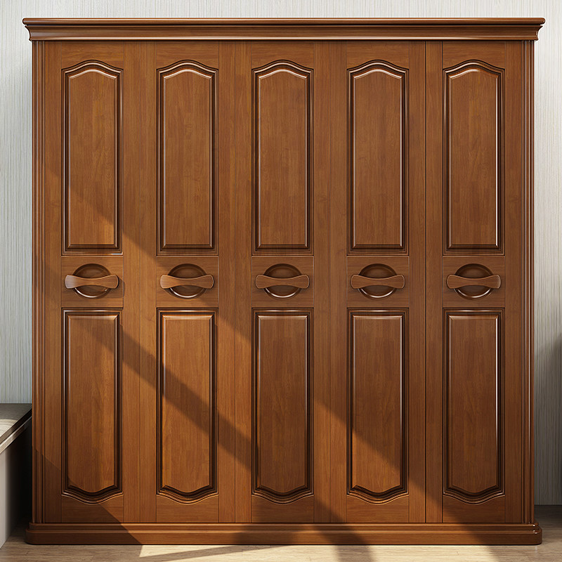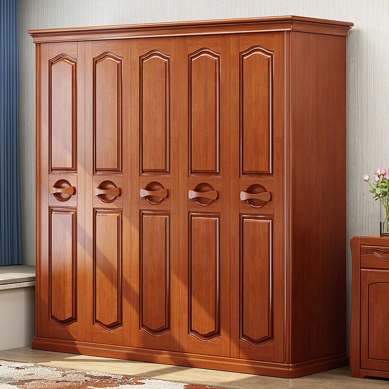 Solid wood wardrobe new Chinese style three four five six door large wardrobe double door wardrobe modern minimalist bedroom furniture