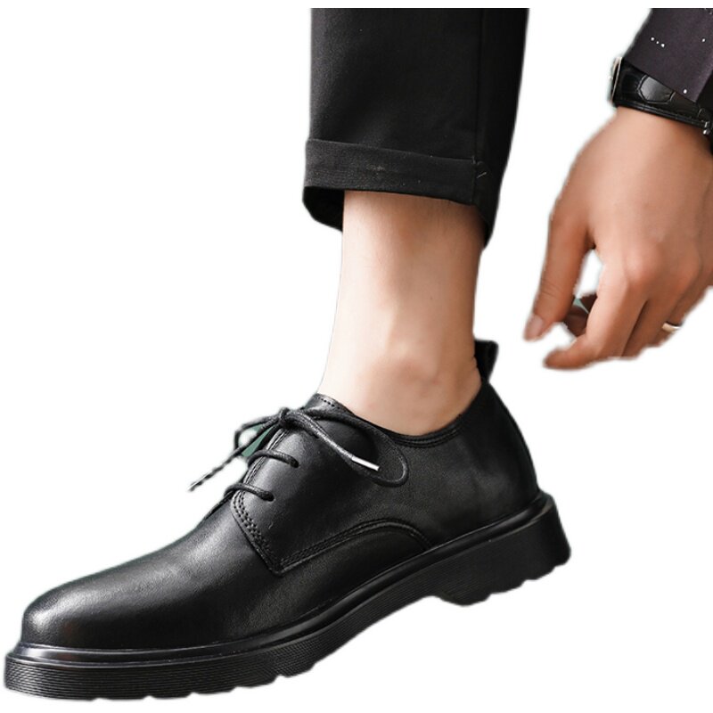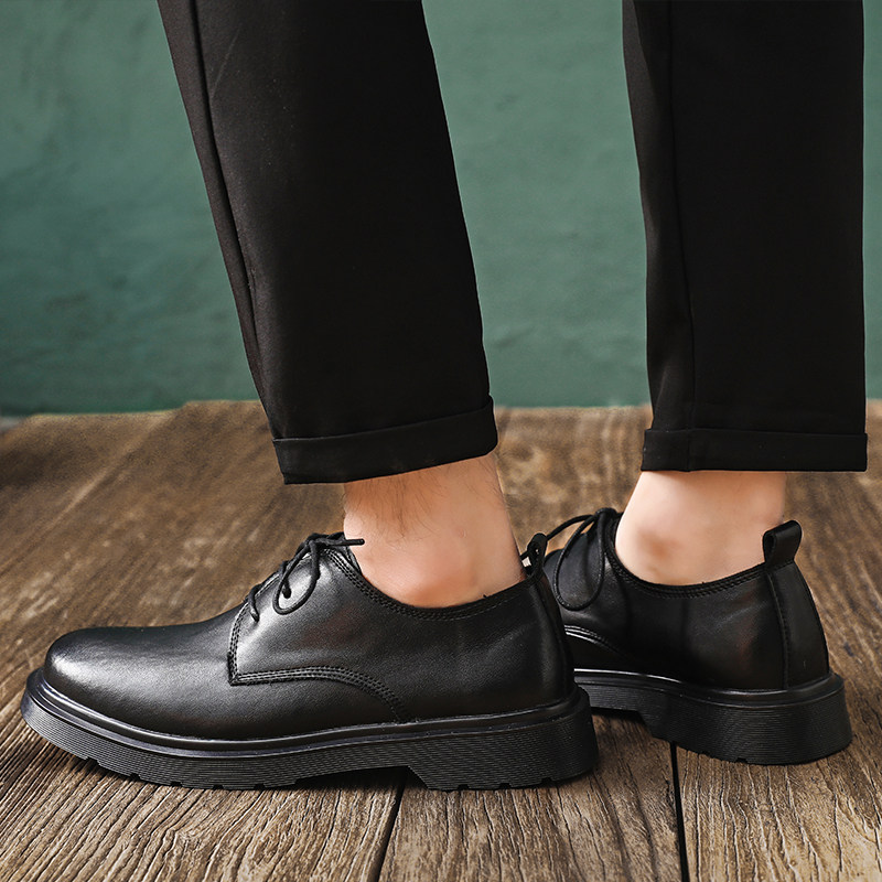 Leather Martin boots men's low-top black British summer 3-hole heightened ins formal leather shoes tooling motorcycle boots