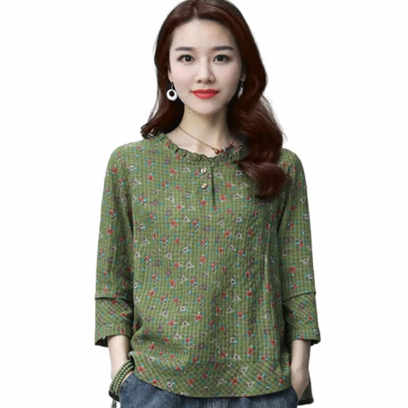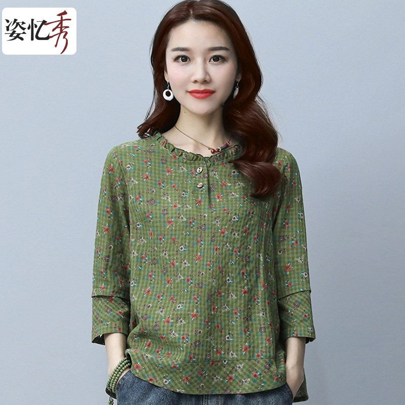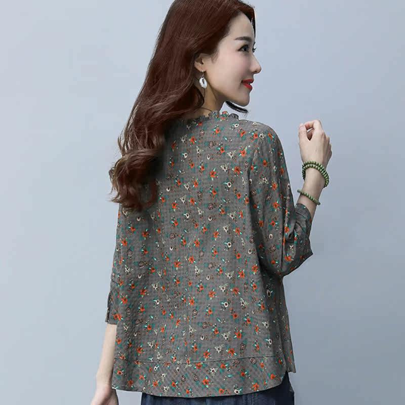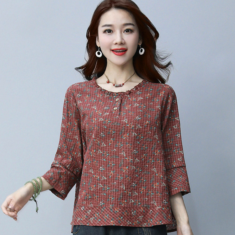 Pose Remembrance Show 2022 Spring Dress New T-shirt Woman Blouse 70% Sleeves Casual Loose Korean version Broken Flowers Sleeve Head Beat