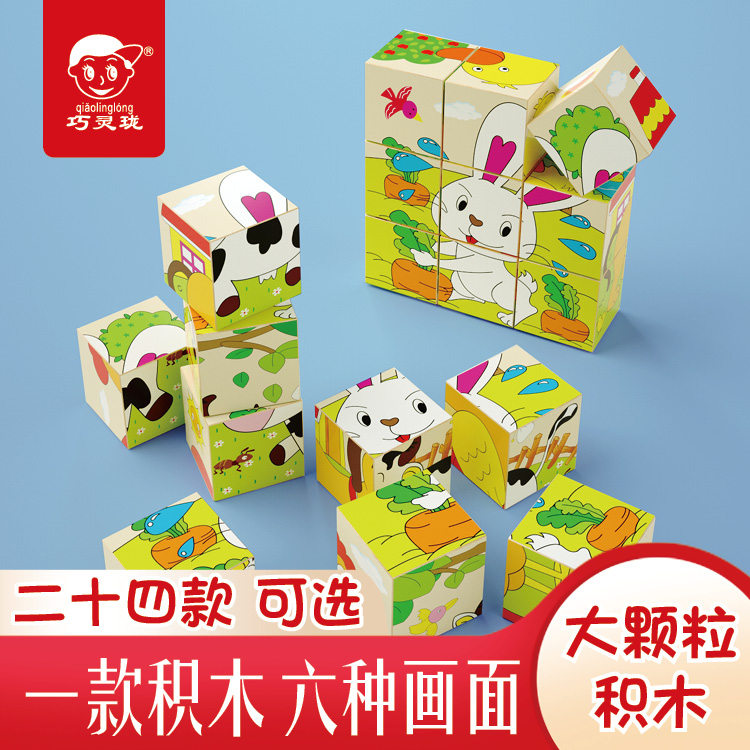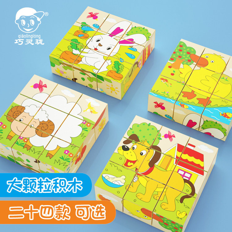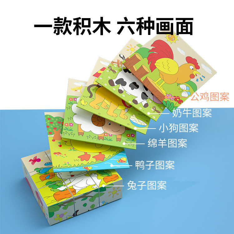 Six-sided painting wooden jigsaw puzzle assembly toys educational 3D three-dimensional boys and girls 2-6 years old 3-year-old children baby building blocks