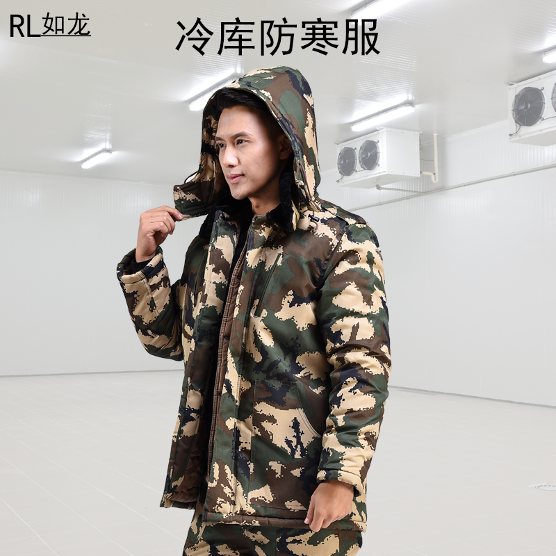 Medium and long version of camouflage cotton clothing men's cold storage special cold clothing suit labor protection clothing cotton jacket cotton pants large size thickening loose