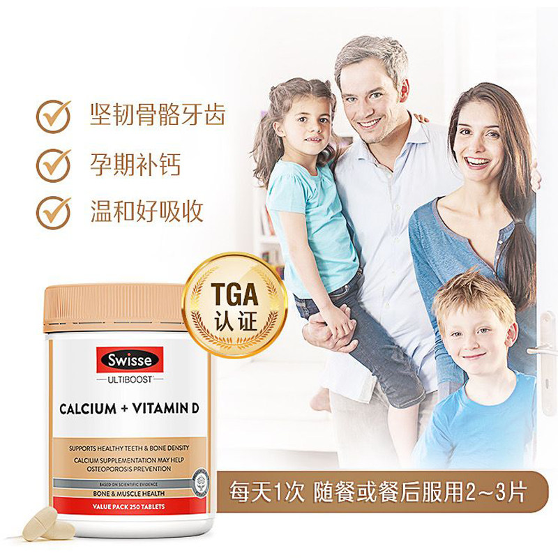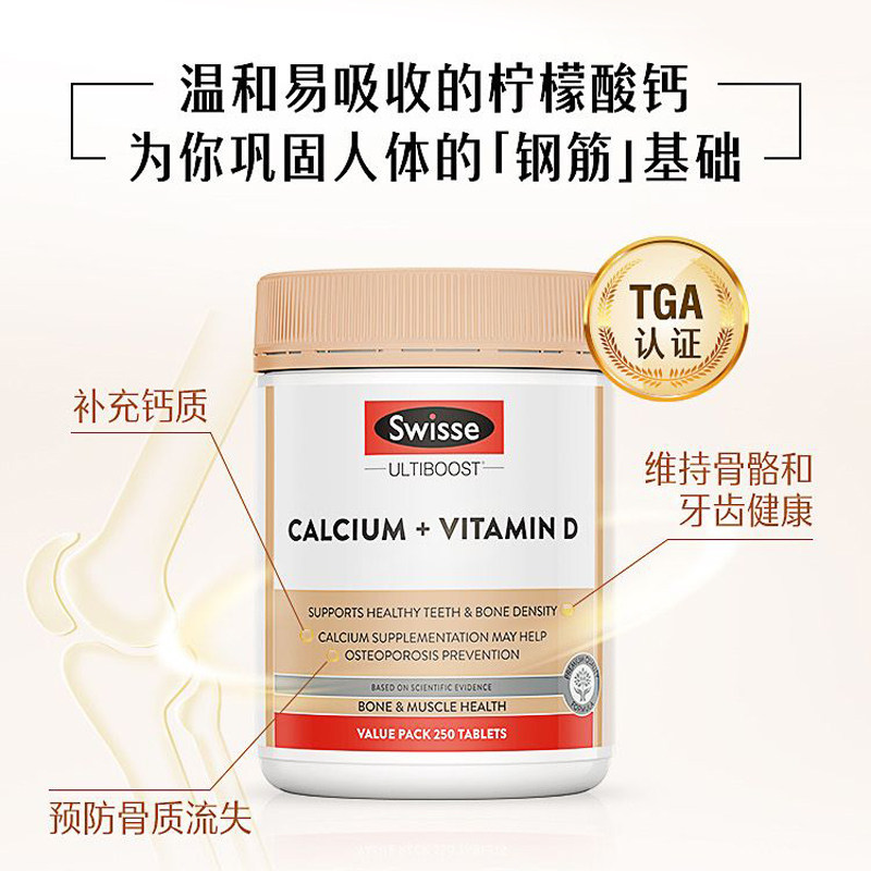 Australian swisse calcium tablets vitamin D calcium citrate calcium citrate 250 capsules for middle-aged and elderly people during pregnancy