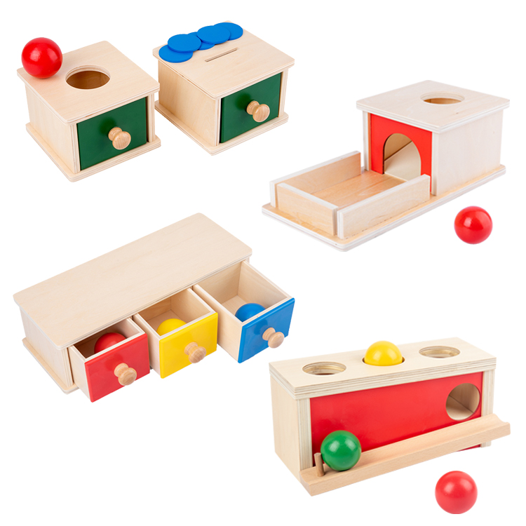Mon Early Teaching Press Ball Table Coin Box Wooden Round Ball Round Sheet Drawers Box Children 1-3-year-old Puzzle Toy Teaching Aids