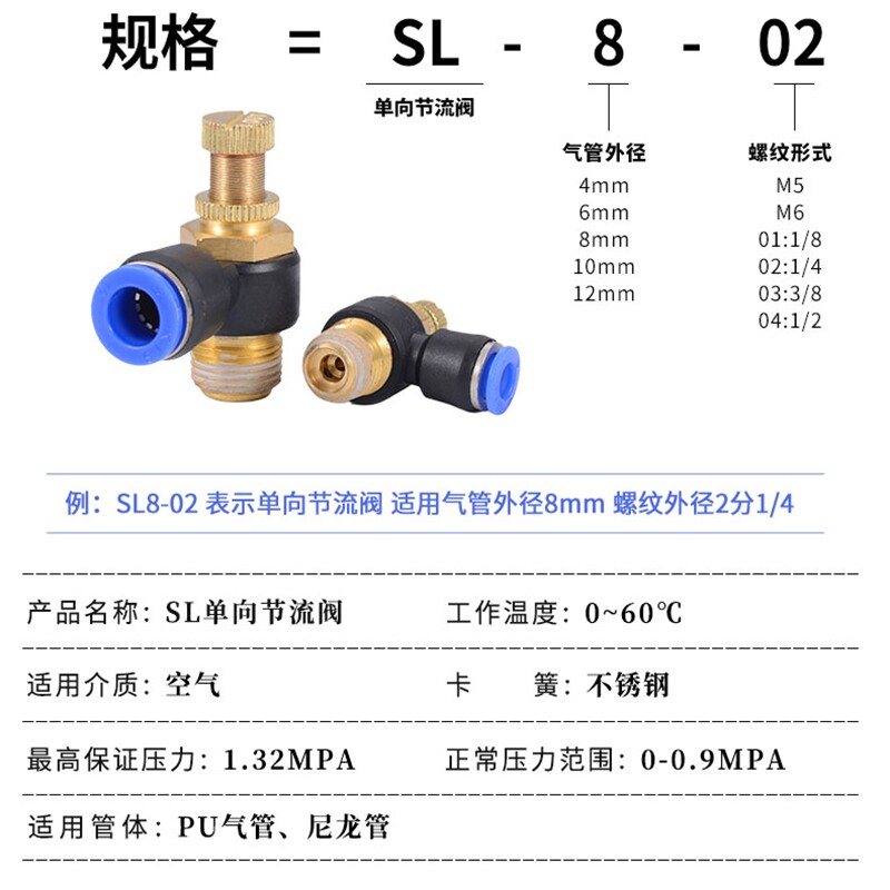 Quick connector throttle valve SL pneumatic air pipe one-way adjustable speed control valve SL4-02 6-03 8 10 12mm