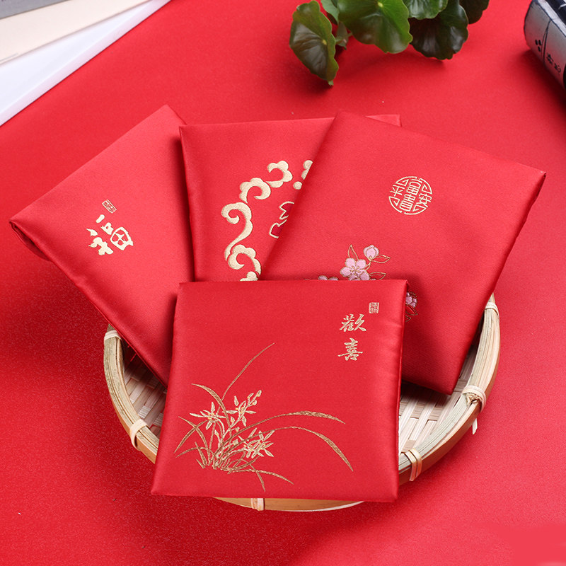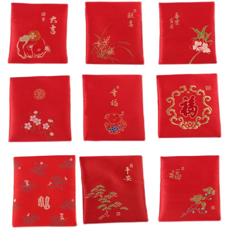 Chinese Hanfu Simple Embroidery Handmade Fabric Red Packet Clutch Bag Buddha Beads Jewelry Storage Bag Coin Purse Gift