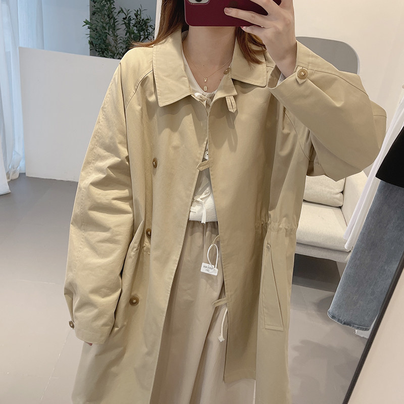 Lolora card with its colour medium long version of the windy woman spring new pure colour POLO collar straight drum minimalist jacket jacket