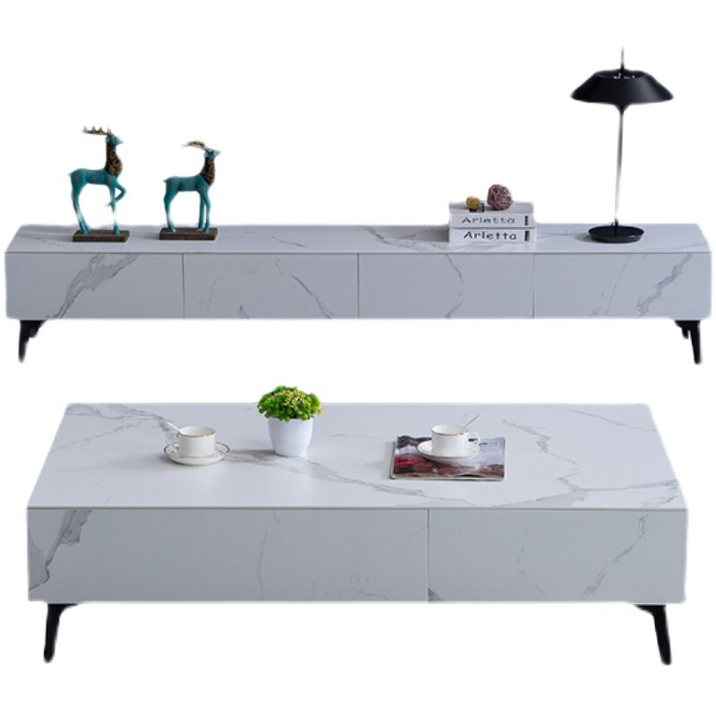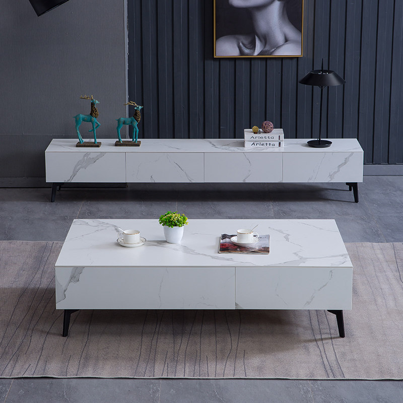 Italian minimalist rock slab coffee table TV cabinet combination Nordic light luxury simple design small apartment artwork texture cabinet