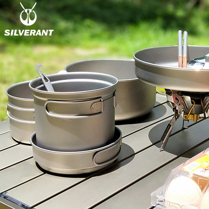 SLIVERANT silver anterite pure titanium cooker folded portable handle camping multi - function combination pot lightweight outdoor cooker