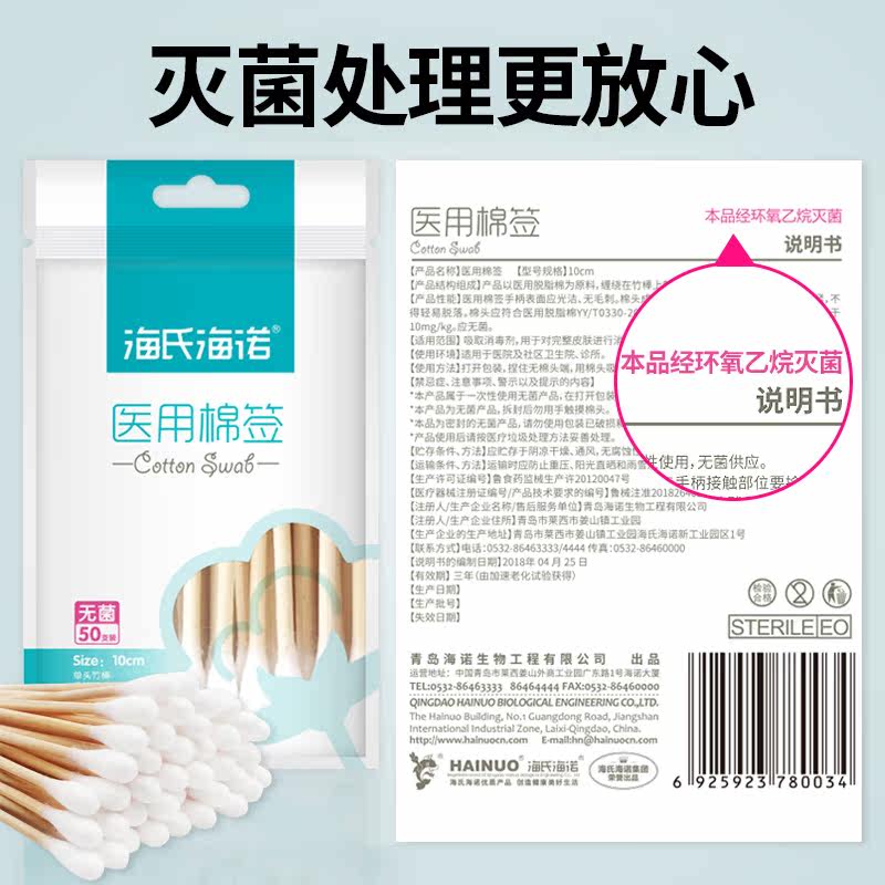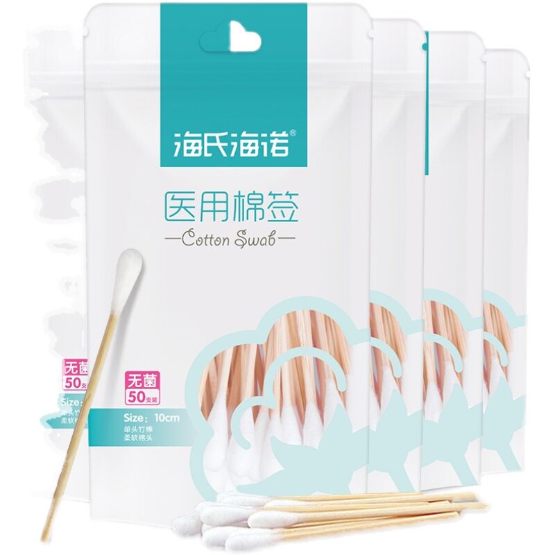 Sterilized cotton swab makeup remover single head cotton swab wooden stick 10cm disposable baby disinfection cotton swab ear