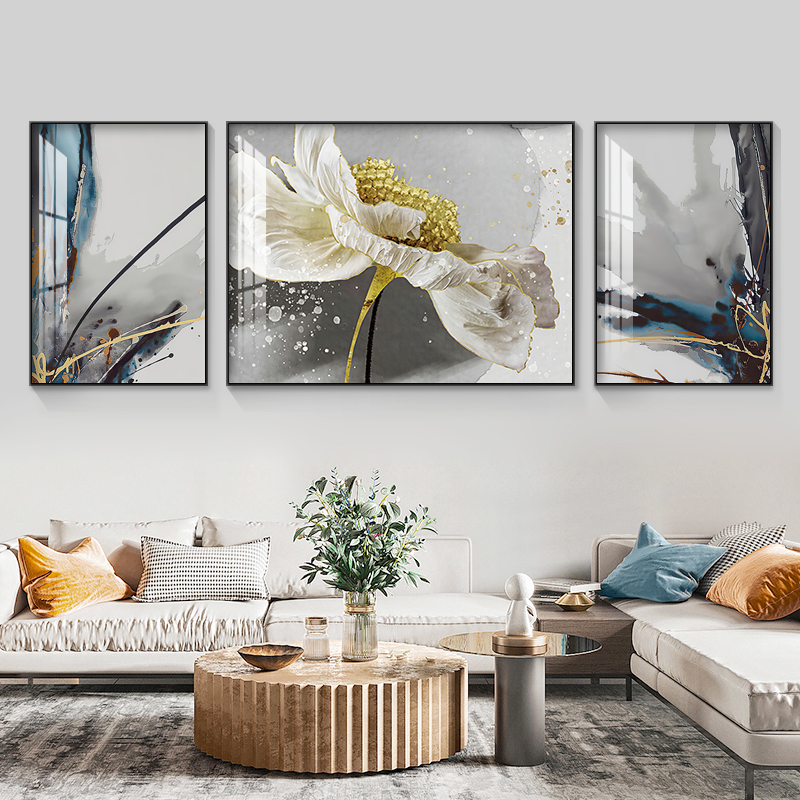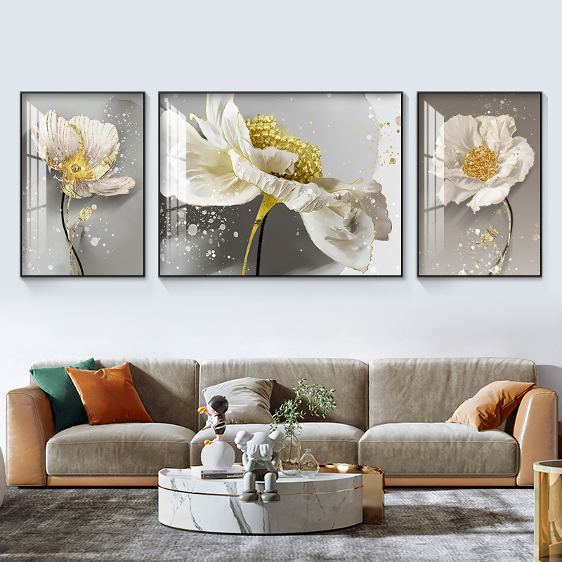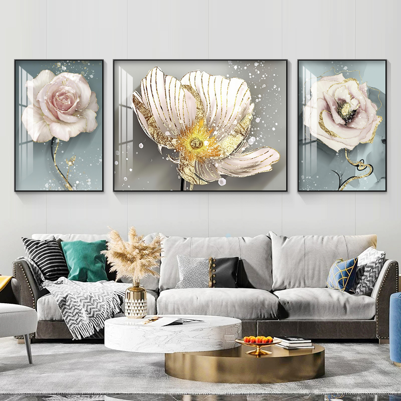 Nordic style living room decorative painting sofa background wall inlaid diamond crystal porcelain painting modern minimalist hanging painting light luxury triptych