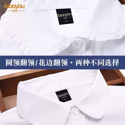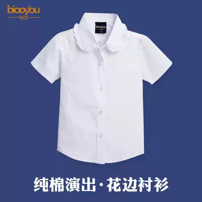 Girls' white shirt short-sleeved campus school uniform middle school children's primary school performance clothing children's cotton white shirt