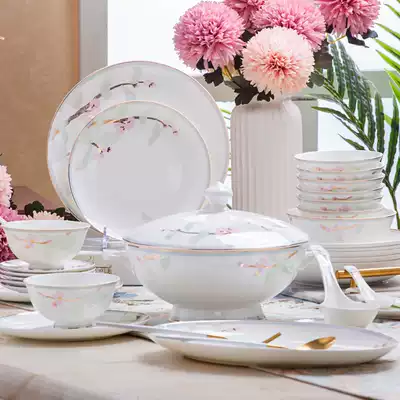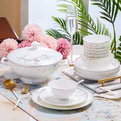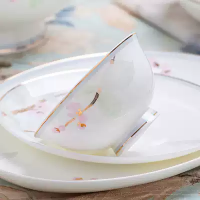 Dish set Household simple light luxury European-style bowl set Jingdezhen ceramic bone china tableware set modern combination