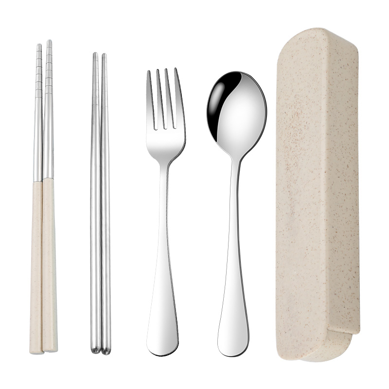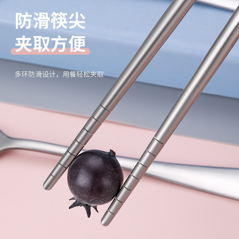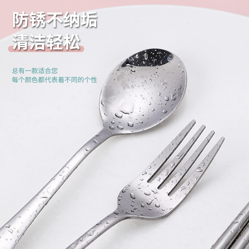 Portable chopstick spoon suit One person food tableware Three sets of stainless steel fork single student cute containing box-Taobao