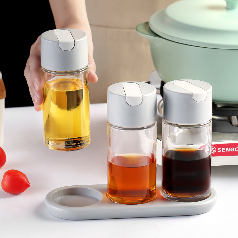 Automatic opening and closing fragrant oil bottle kitchen Home small oil tank Mini glass oil pot suit soy sauce oil vinegar jar Vinegar Jar Sauce