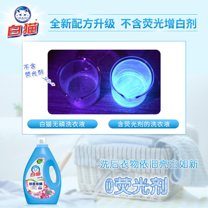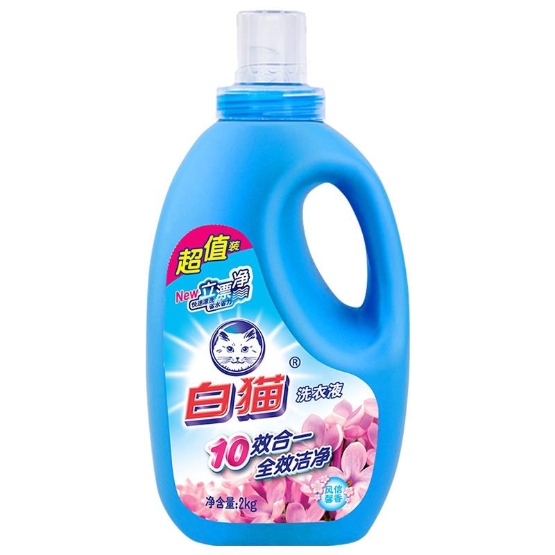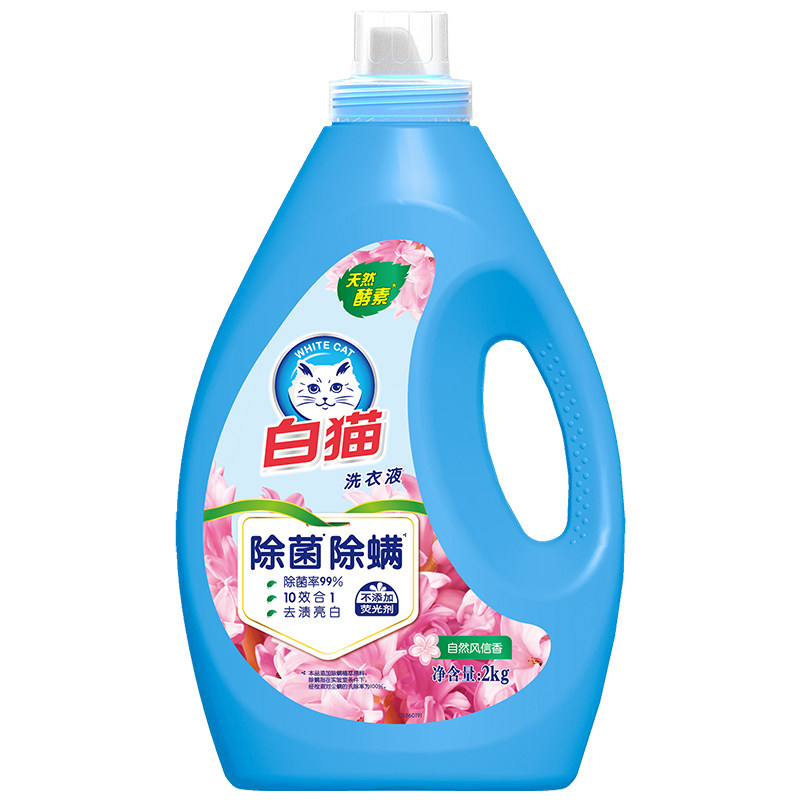 White cat phosphorus-free laundry detergent new bottle 2kg fast rinsing, water saving, labor saving, full effect cleaning, mite removal and sterilization