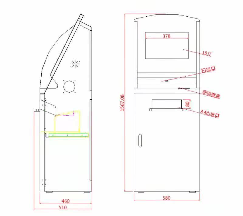 17 17 19 21 5 inch hospital bank A4 printing card-reading self-taking single-machine touch query integrated enclosure custom