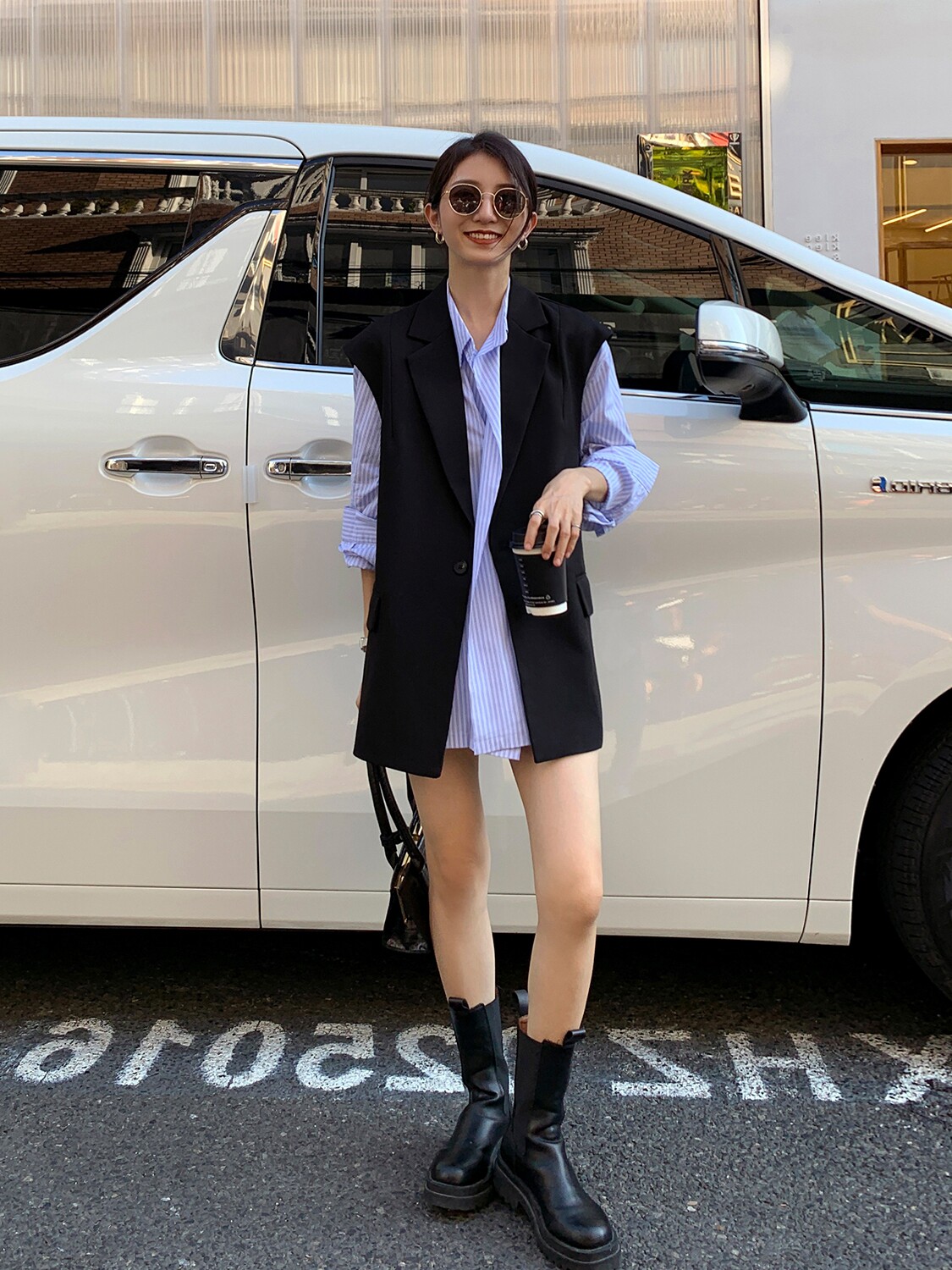 Korean suit vest vest jacket female long version British style Korean version all-match loose sleeveless mid-length vest