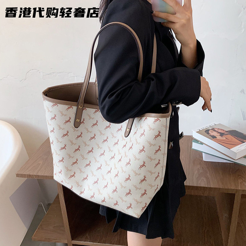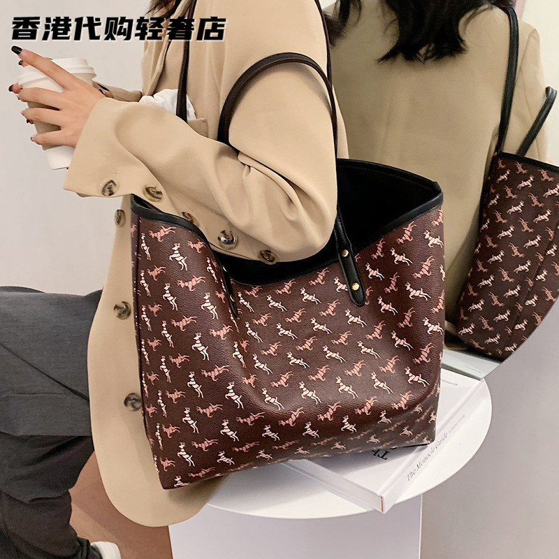 French Special Cabinet Women's Bag Bifacial Care Special Bag New Cow Leather Large Capacity Single Shoulder Printed Mother-daughter Large Handbag