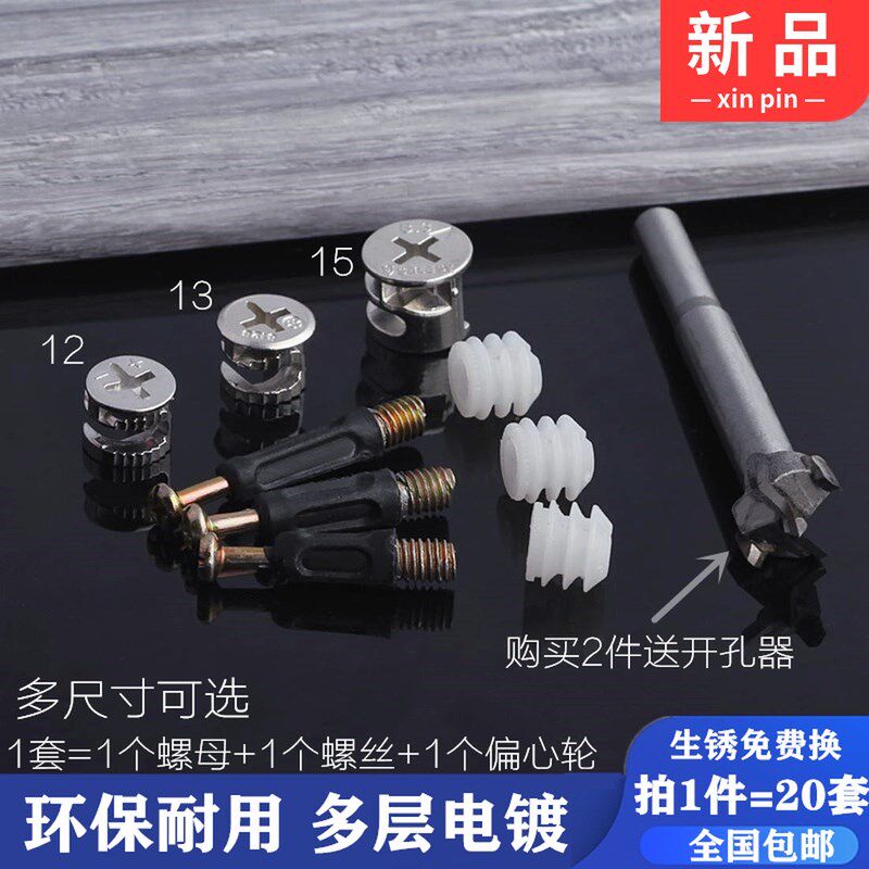 Three-in-one connector screw nut 15 eccentric wheel bed wardrobe drawer plate 12 desk assembled fastener