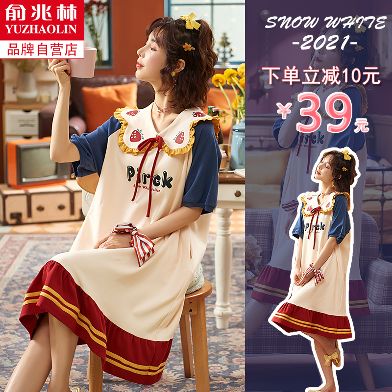 Yu Zhaling Lin's new sleepdress in 2022 summer pure cotton thin cute large snow white wind pajamas summer