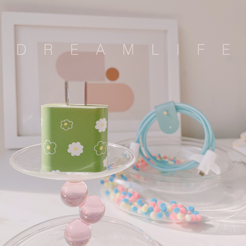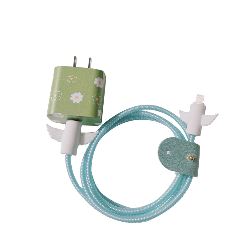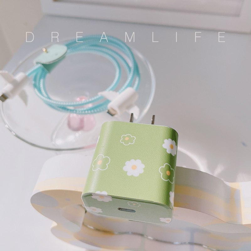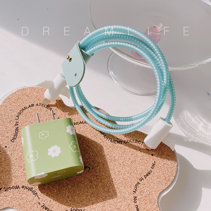 Apple 12pro green small flower data line protective sheath applicable ipad20W charger sticker headphone winding rope