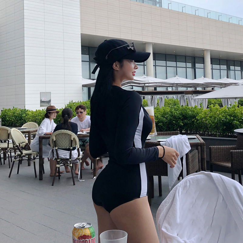 South Korea's original single diving suit women's one-piece sunscreen long-sleeved swimsuit is thin slim slim and quick-drying surf suit jellyfish suit gathered