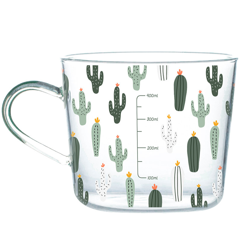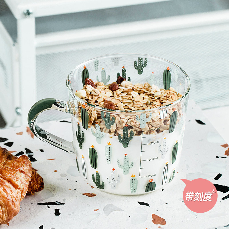 Nordic large capacity glass with scale net Red household milk cup High borosilicate heat-resistant cold water cup Tea cup