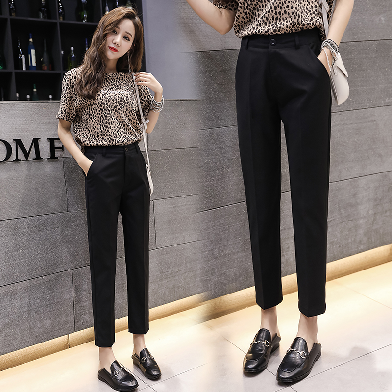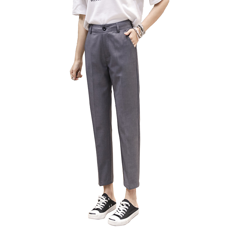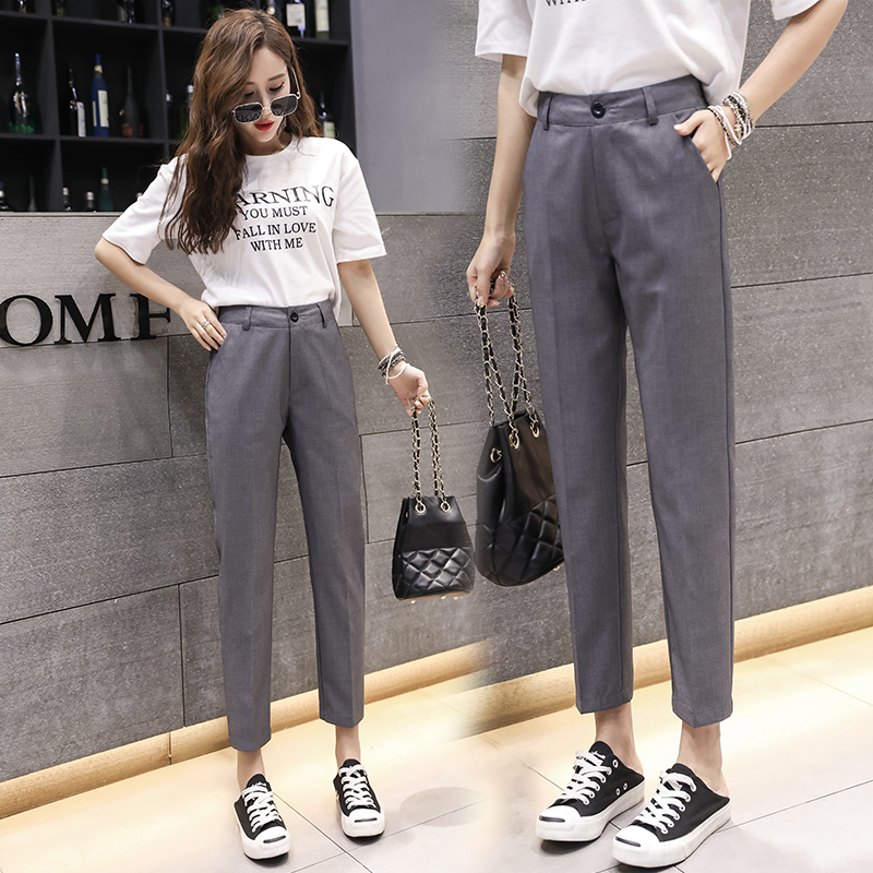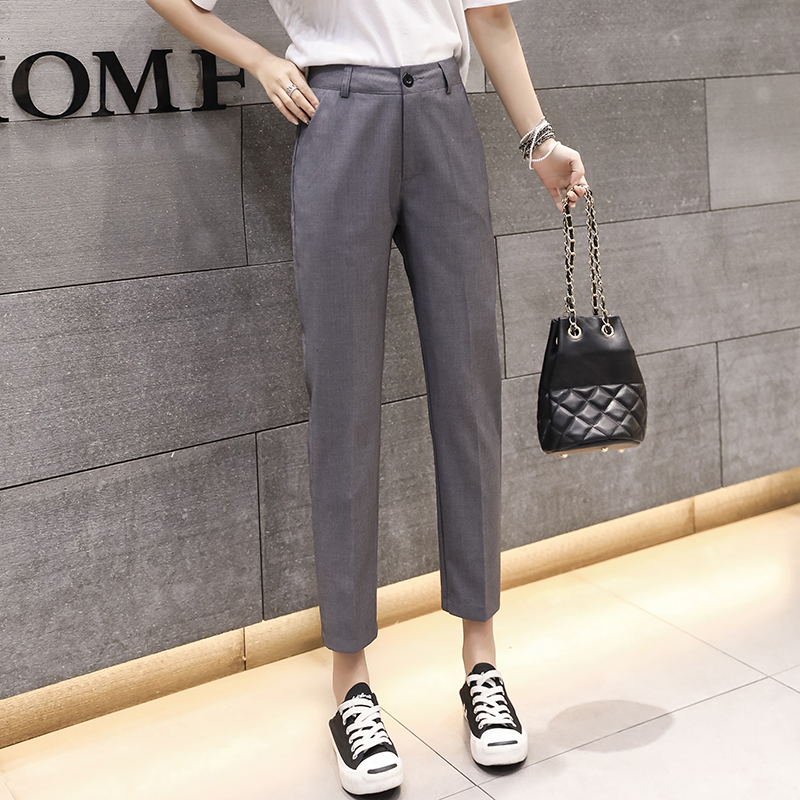 Cigarette pipe straight pants women's summer thin nine-point black suit small eight-point gray casual small feet professional trousers