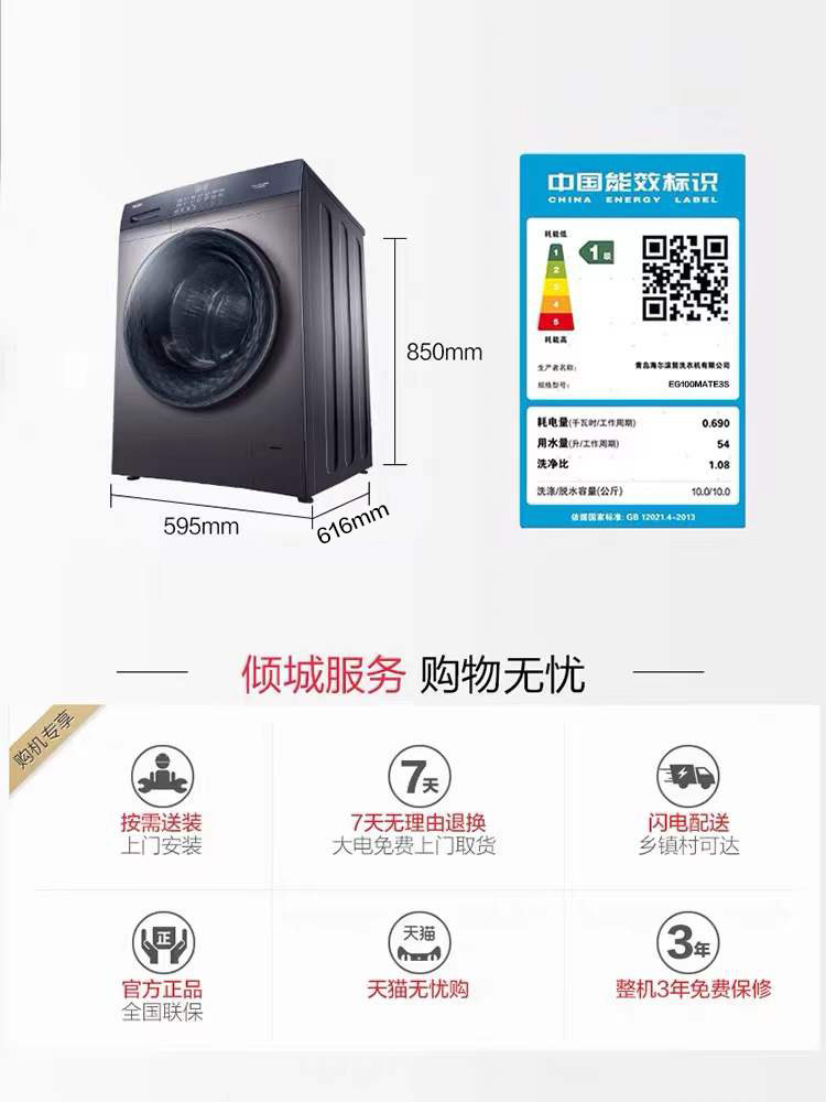 (Bacteria removal and mite removal) Haier 10 kg automatic household washing machine MATE3S with integrated frequency conversion drum washing machine
