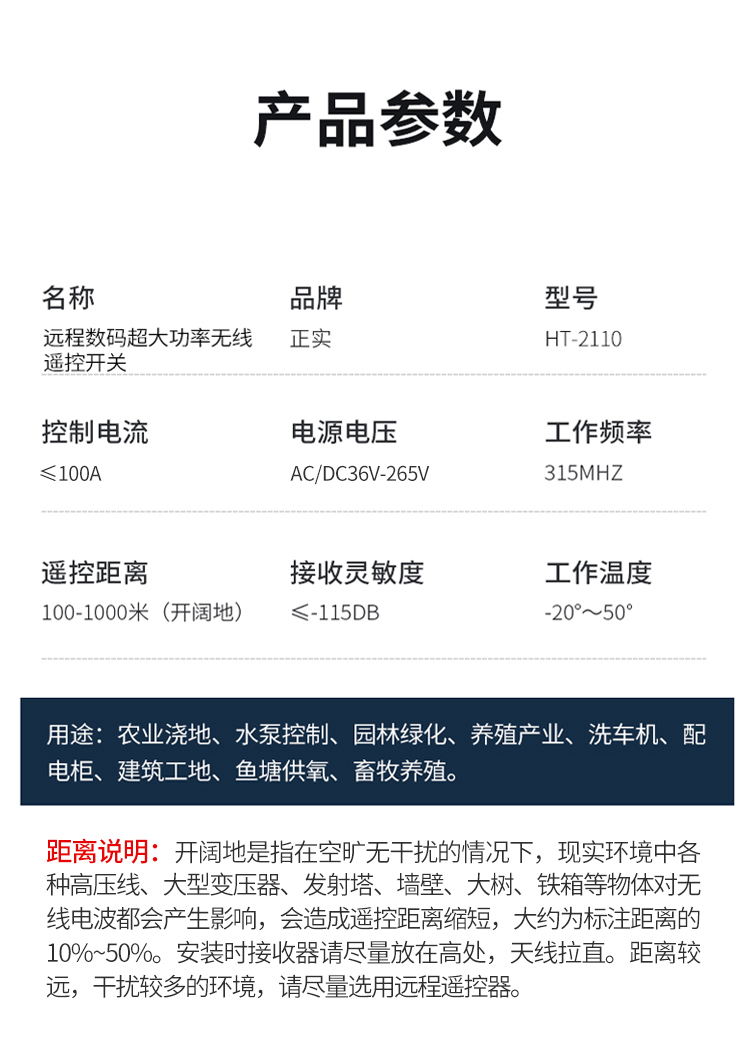 Positive remote high-power wireless remote control switch 10 KW submersible pump motor long-distance remote control control switch