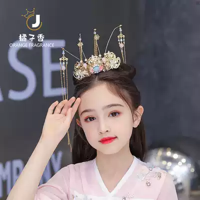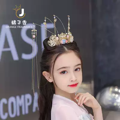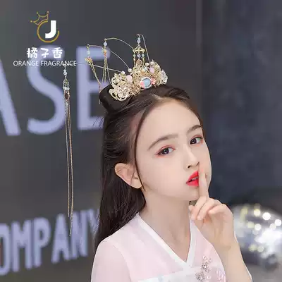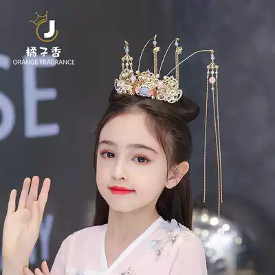 Girls Hanfu Tiara Ancient tiara Court children's ancient costume Ancient style Super fairy hair accessories Girls Tassel tiara accessories